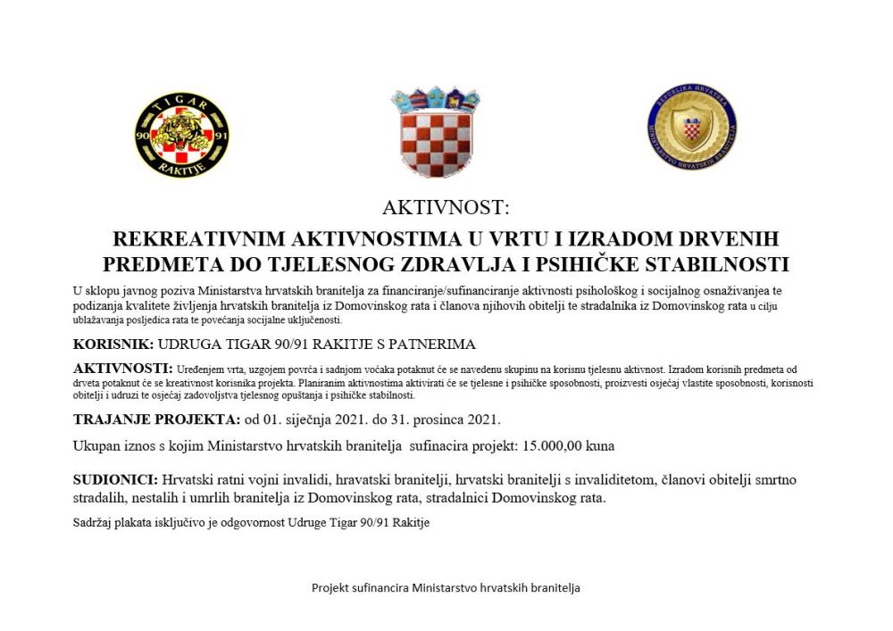 Udruga Tigar 90/91 Rakitje je korisnik institucionalne