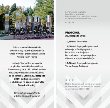 29.10.2019. (utorak) Komemoracija Trokut – Novska u spomen poginulim braniteljima na novljanskoj bojišnici