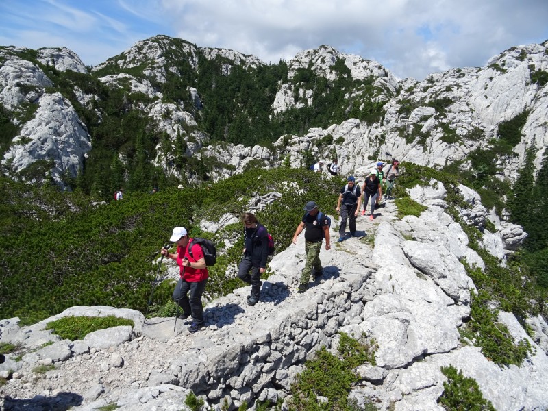 Prvi plan je bio da se penjemo na vrh Snježnik, ali s obzirom na vremenske uvjete, vodiči su, kako bi izbjegli mogućnost da se netko od sudionika izleta ozlijedi na mokrom kamenjaru, odlučili promijeniti cilj, pa smo, čim se vrijeme malo popravilo, krenuli makadamskom cestom prema Guslici.